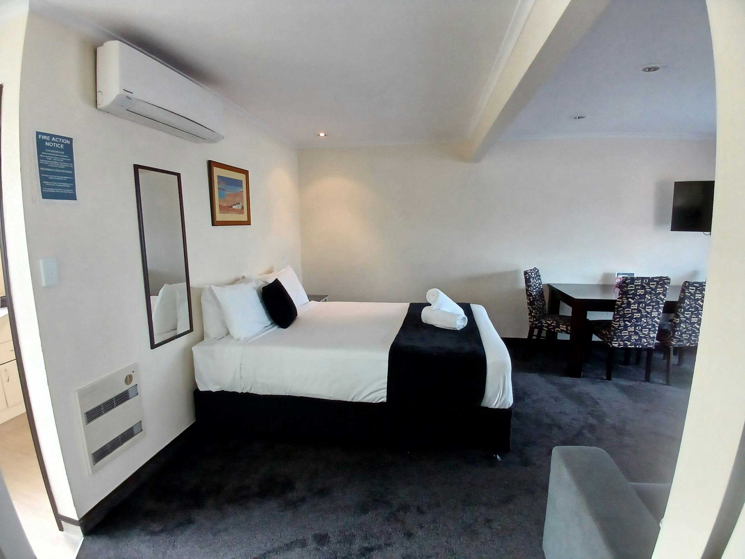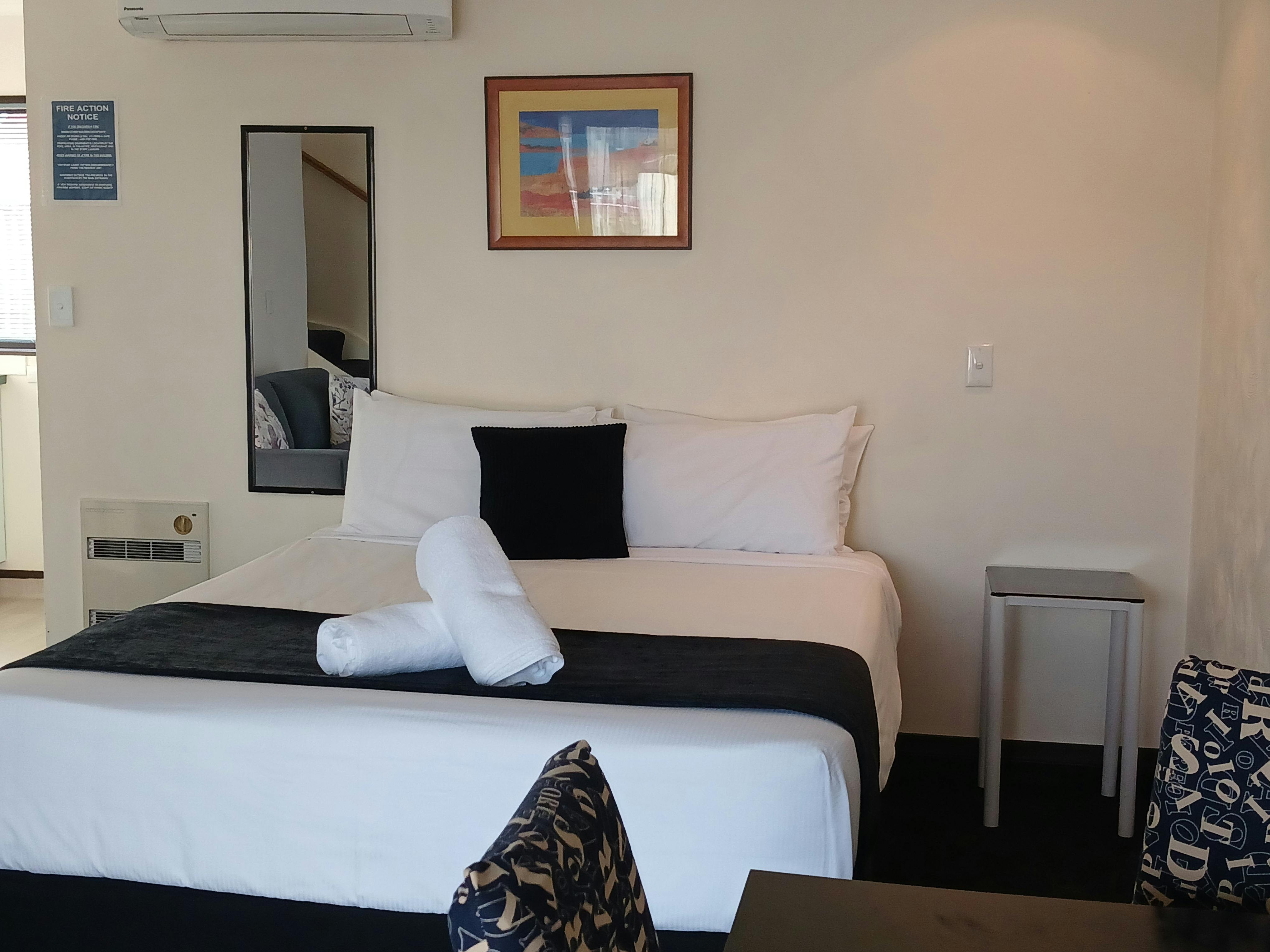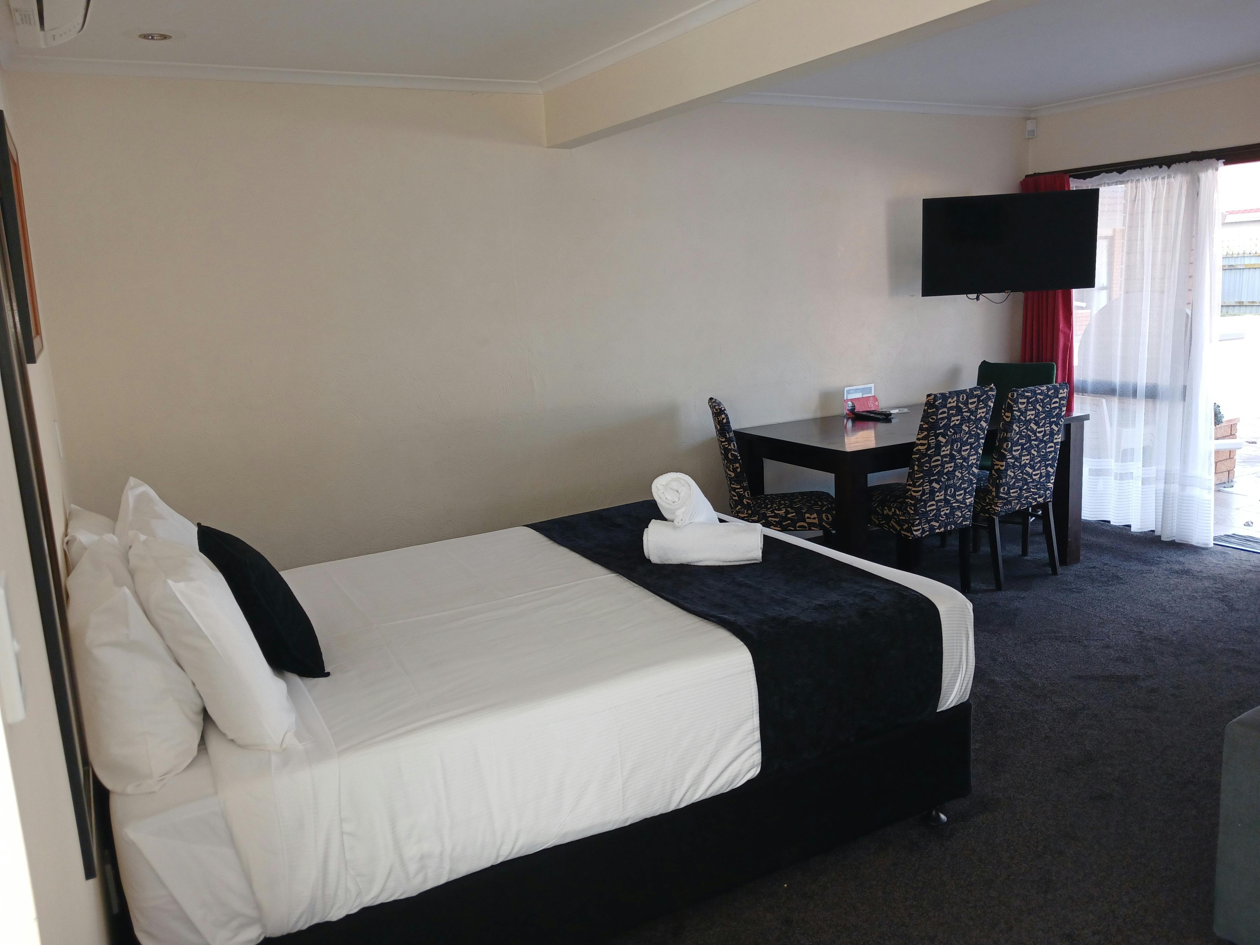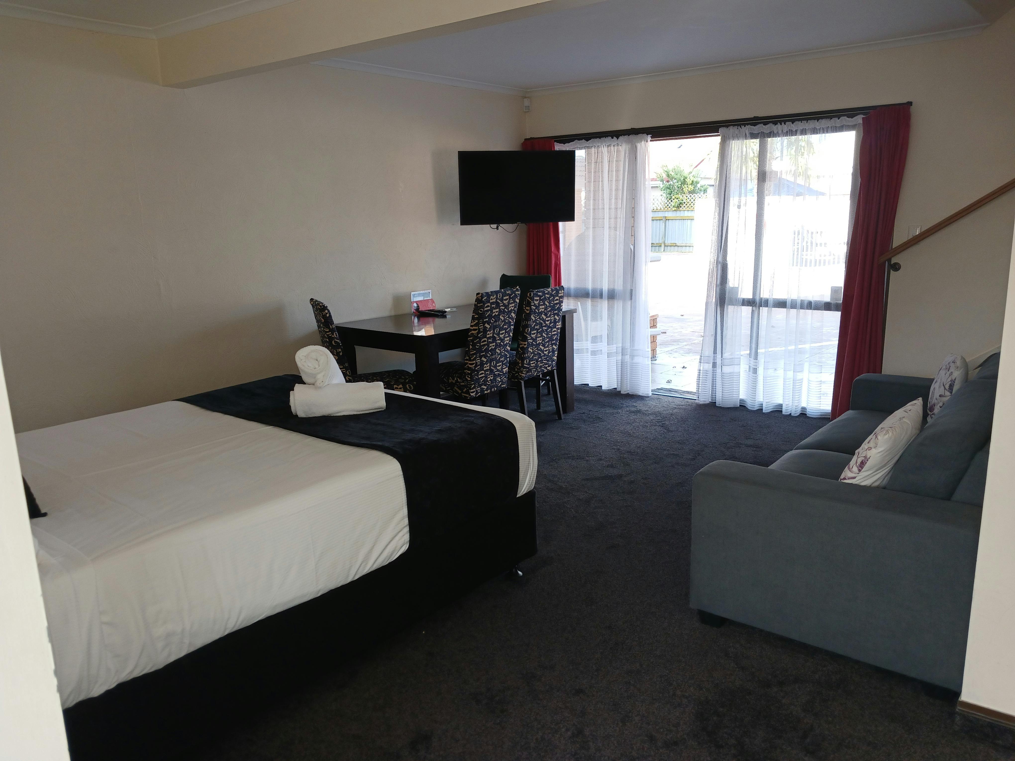 Kitchenette has a Fridge/Freezer, 2 burner hob, Microwave, Electric fry pan, Coffee plunger, Kettle, Iron and Ironing board and Toaster.